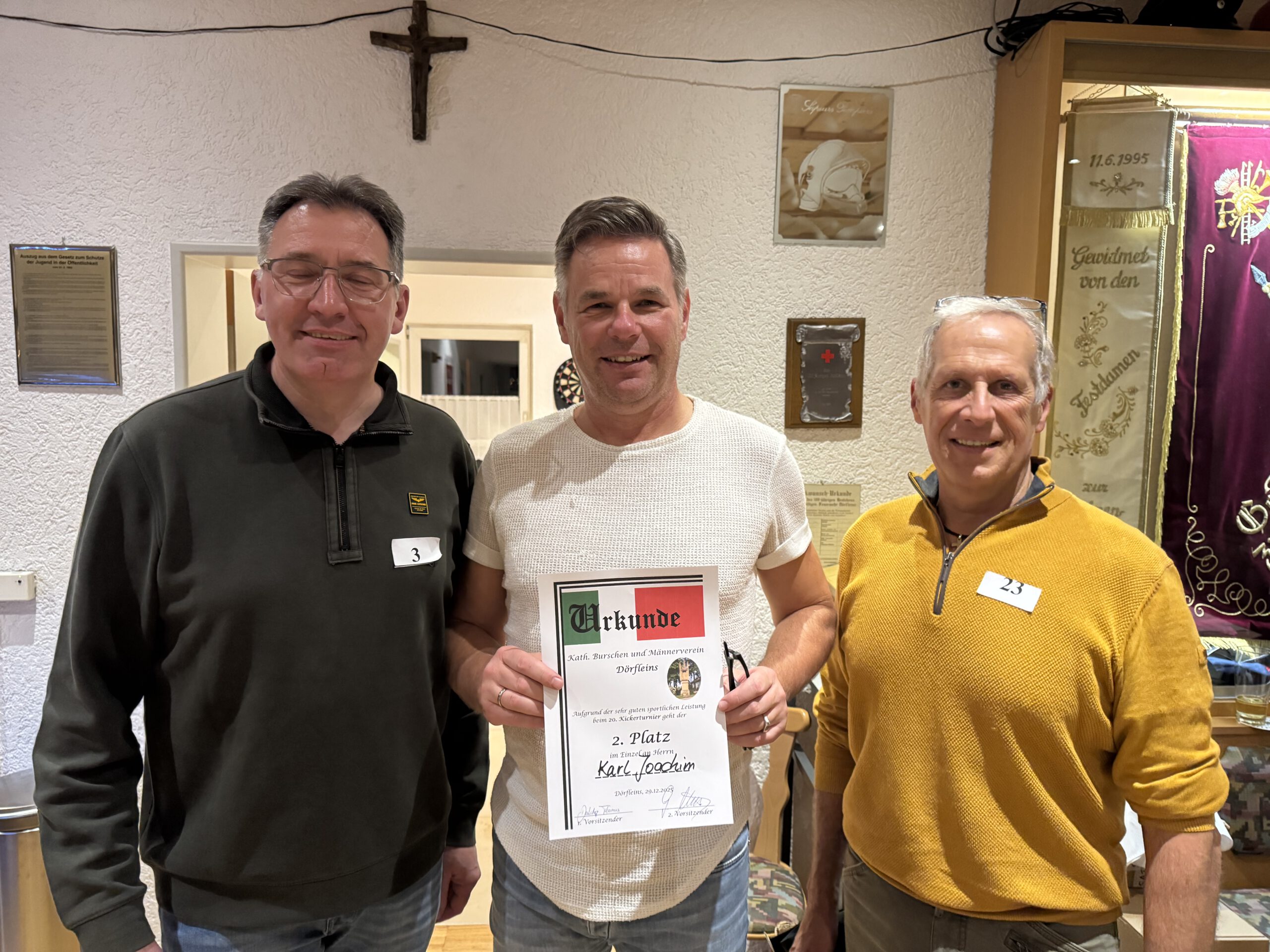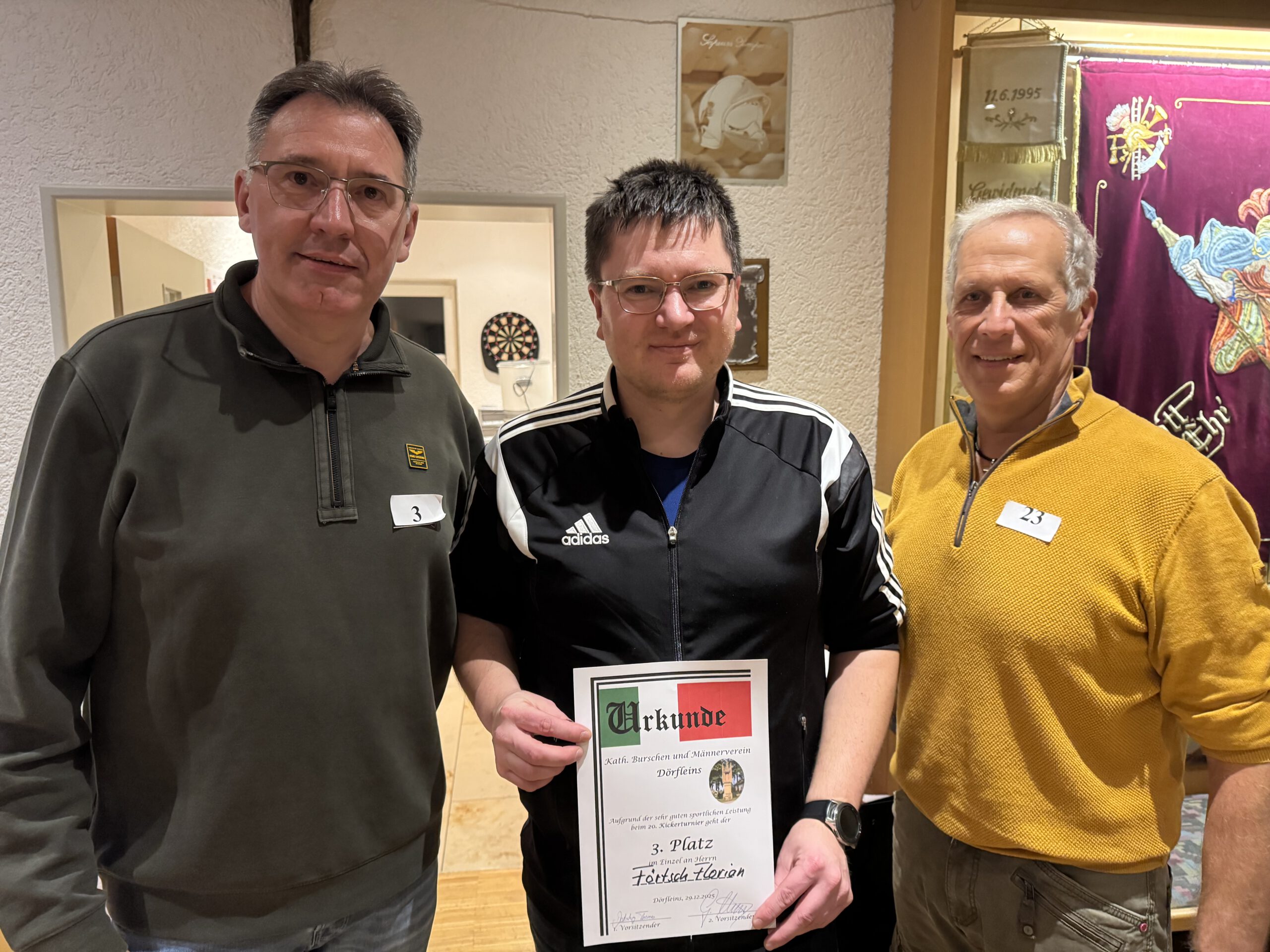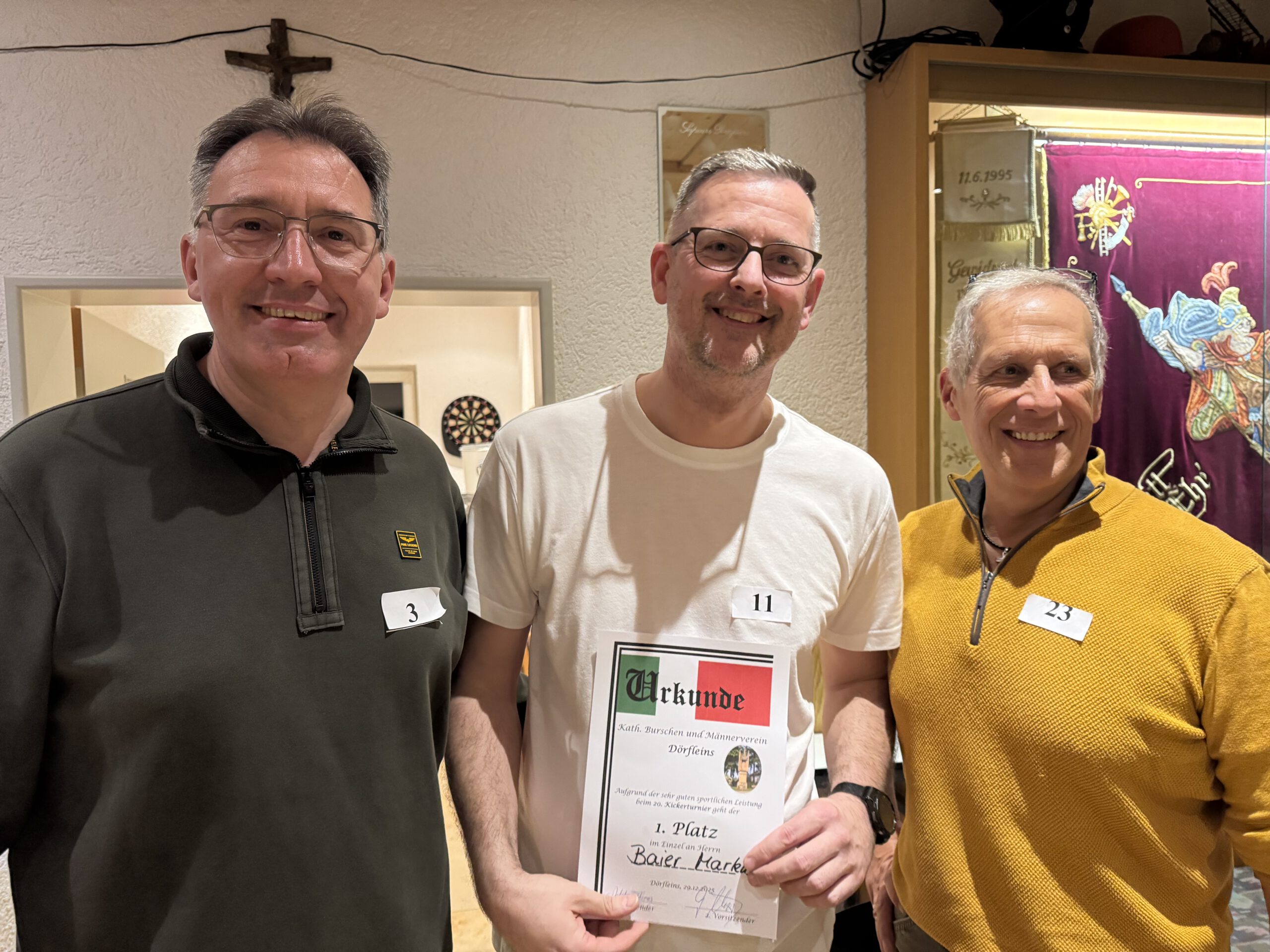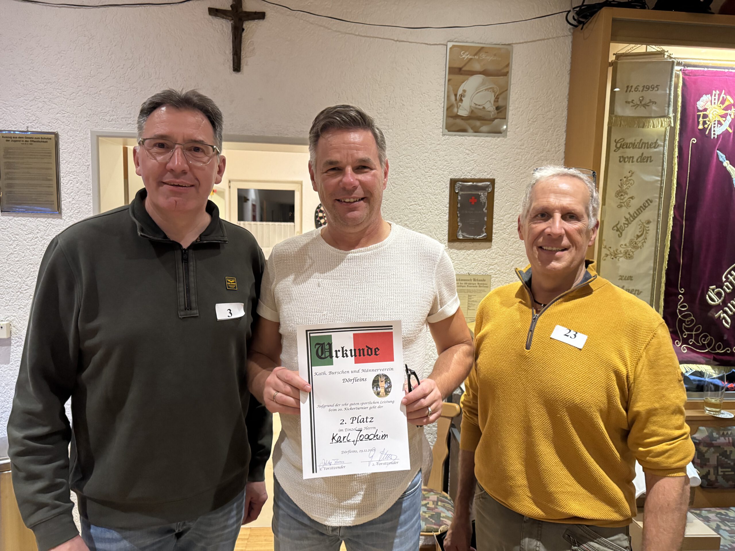 2025 Veranstaltungen 2025 Siegerehrung Stadtmeisterschaft im Schießen Jahreshauptversammlung 36. Pokalkegeln – leider wieder verloren, aber Mitglieder gewonnen ! 3. Dörfleinser Taubenmarkt Frühjahrsversammlung Stadtmeisterschaft im Kegeln 130 Jahre FFW Dörfleins Festgottesdienst mit Festzug Andacht an der Grotte in Kemmern Johannisfeuer Fronleichnam in Dörfleins Festzug zur Kirchweih in Dörfleins Feldgottesdienst Schützenkönig bei den Schützen Hallstadt 37. Pokalkegeln – endlich mal wieder gewonnen Baumpflanzchallange – Santana Apfelbaum Screenshot Kickerturnier Zurück