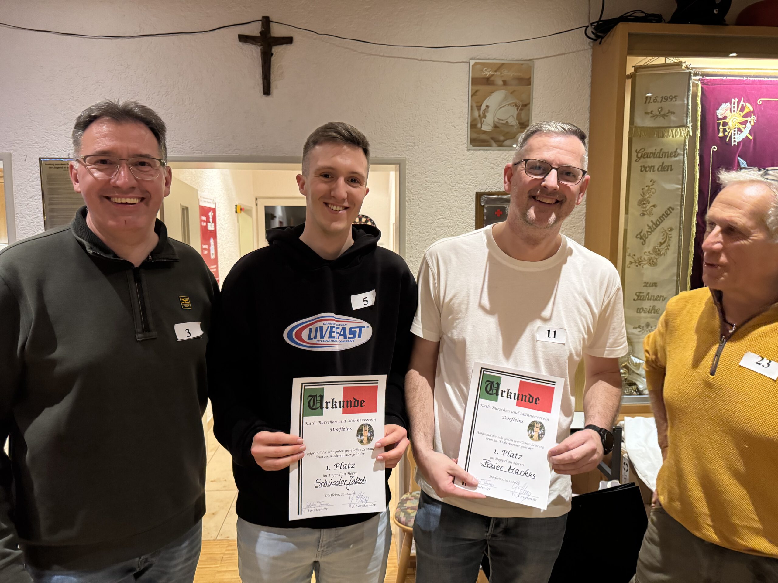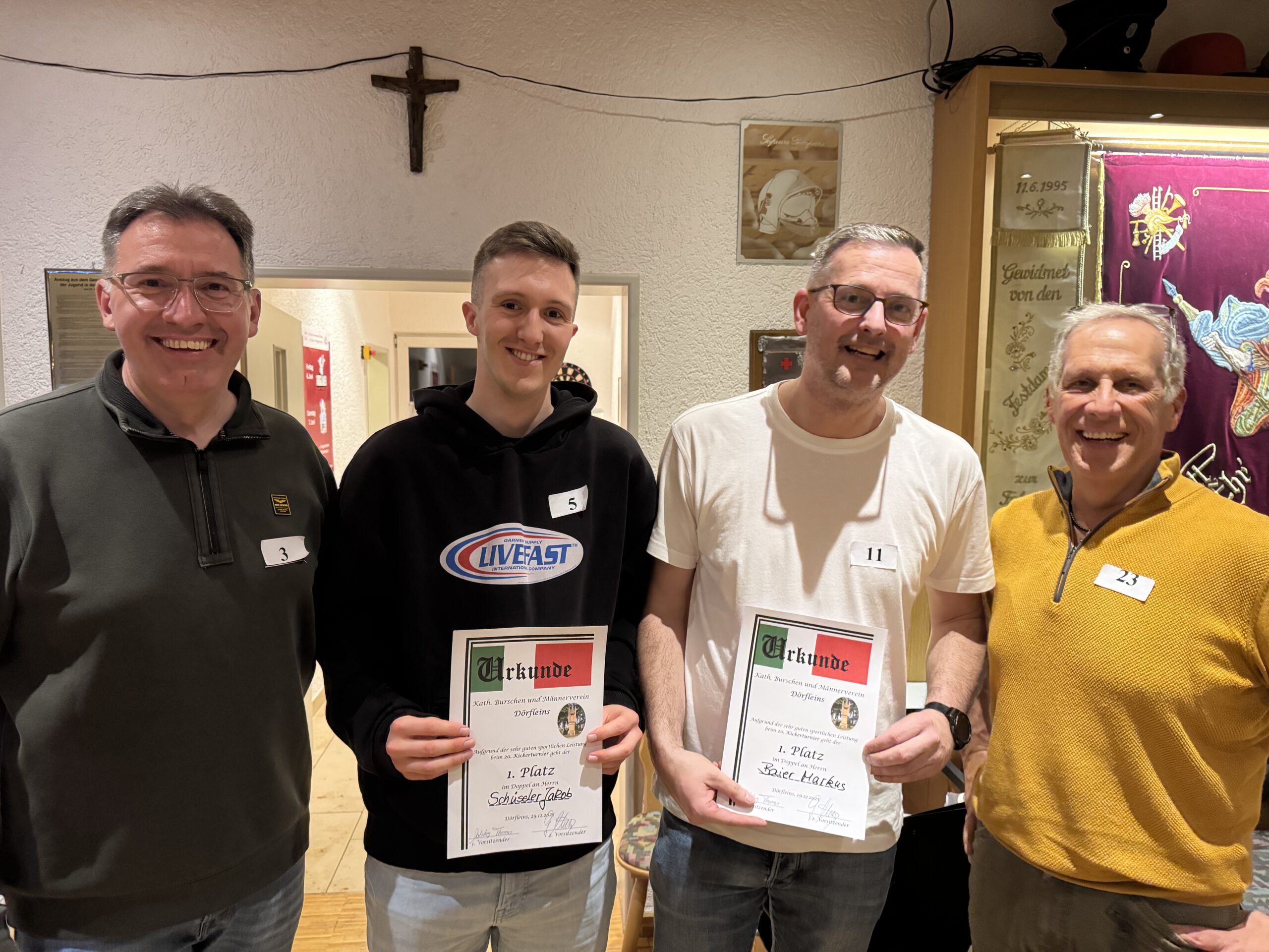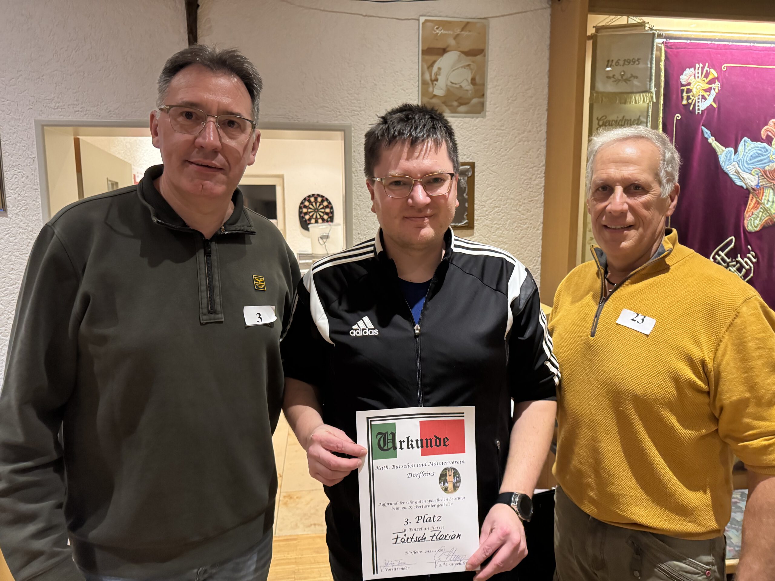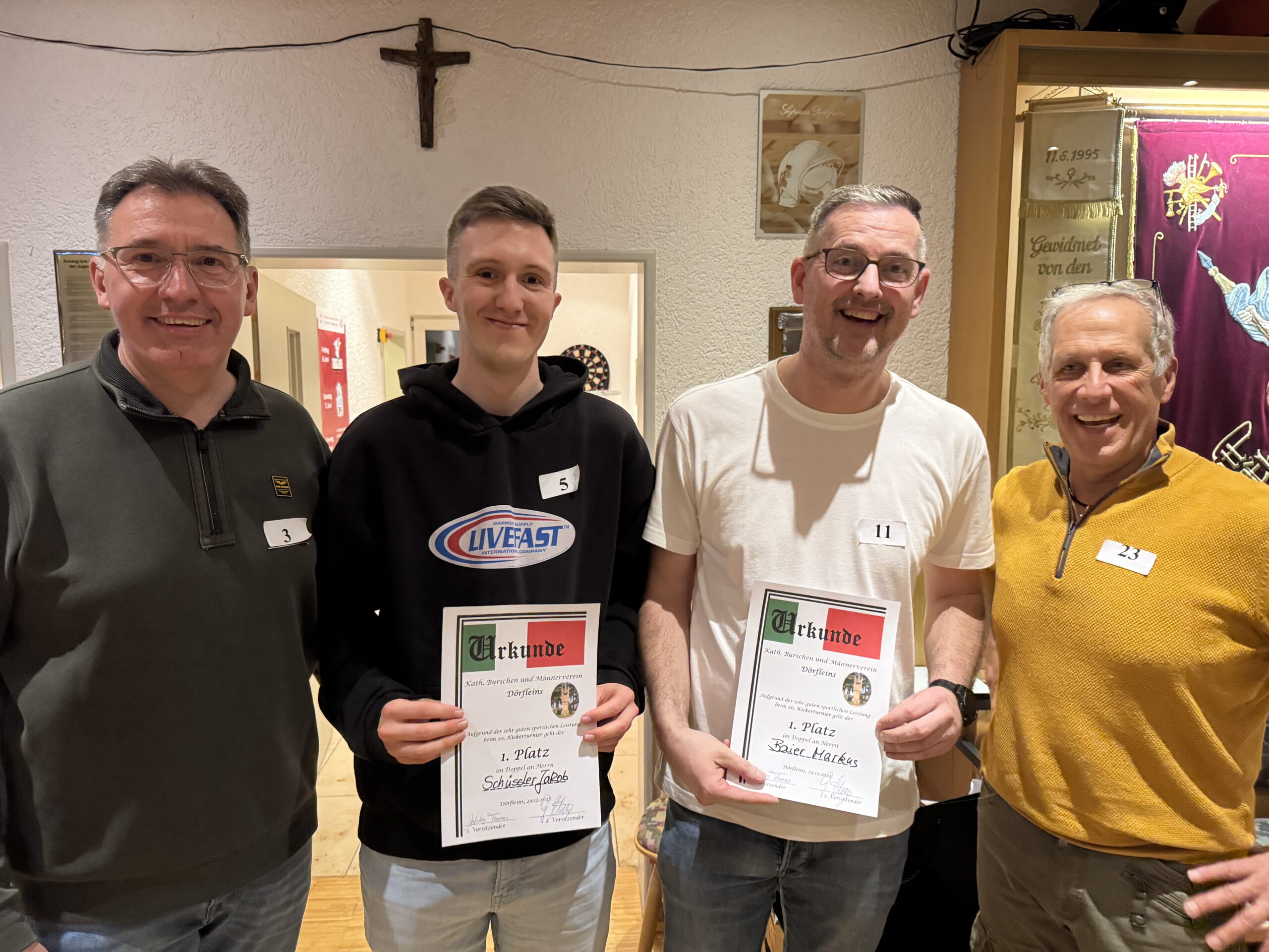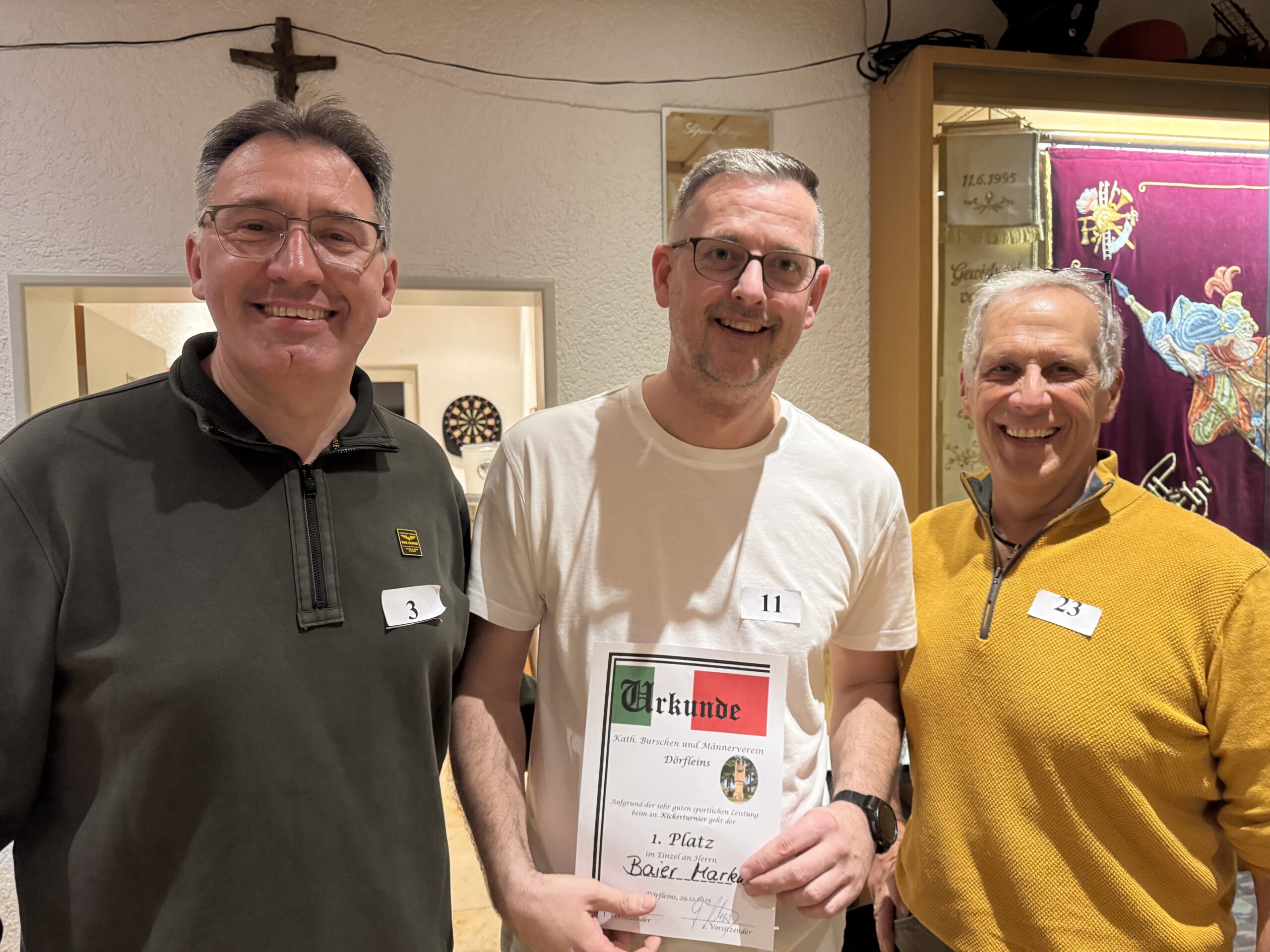 2025 Veranstaltungen 2025 Siegerehrung Stadtmeisterschaft im Schießen Jahreshauptversammlung 36. Pokalkegeln – leider wieder verloren, aber Mitglieder gewonnen ! 3. Dörfleinser Taubenmarkt Frühjahrsversammlung Stadtmeisterschaft im Kegeln 130 Jahre FFW Dörfleins Festgottesdienst mit Festzug Andacht an der Grotte in Kemmern Johannisfeuer Fronleichnam in Dörfleins Festzug zur Kirchweih in Dörfleins Feldgottesdienst Schützenkönig bei den Schützen Hallstadt 37. Pokalkegeln – endlich mal wieder gewonnen Baumpflanzchallange – Santana Apfelbaum Screenshot Kickerturnier Zurück