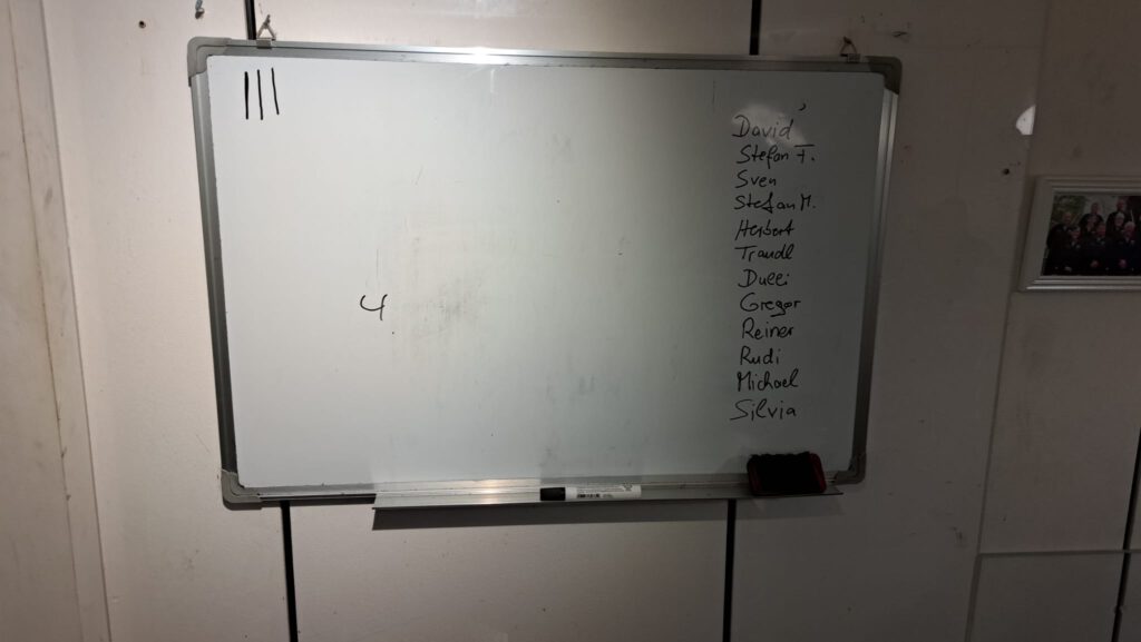 Das letzte Spiel lief ausgeglichen jeder hatte noch eine Zahl ( wir eine 4 ), doch unser Patenverein schlug früher zu und so verloren wir das 38 Pokalkegeln mit 3:4.